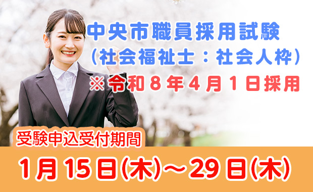 - 2026年01月14日 令和7年度 中央市職員(社会福祉士:社会人枠)採用試験について