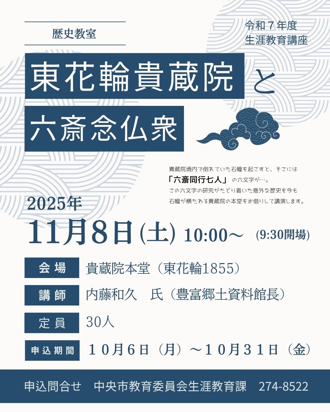 生涯教育講座「歴史教室~東花輪貴蔵院と六斎念仏衆~」
