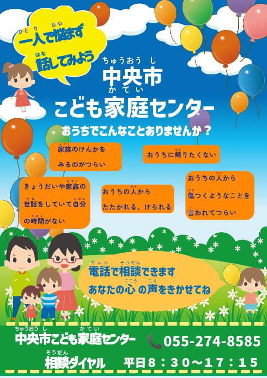 中央市(ちゅうおうし)こども家庭(かてい)センター 055-274-8585