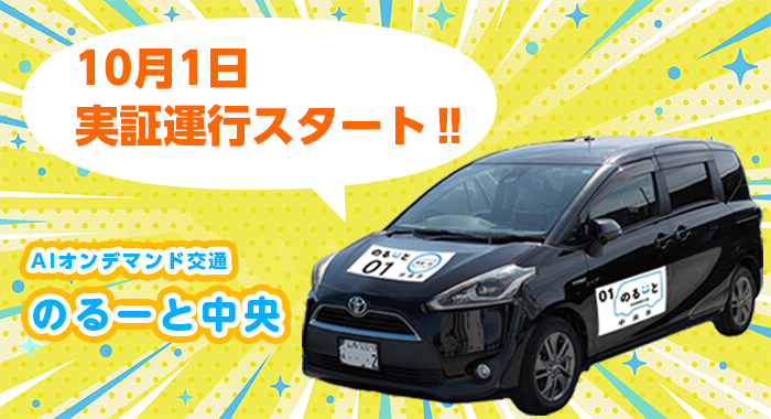 令和7年10月1日より、市内全域において、AIを活用したデマンド交通『のるーと中央』の実証運行をスタートします。