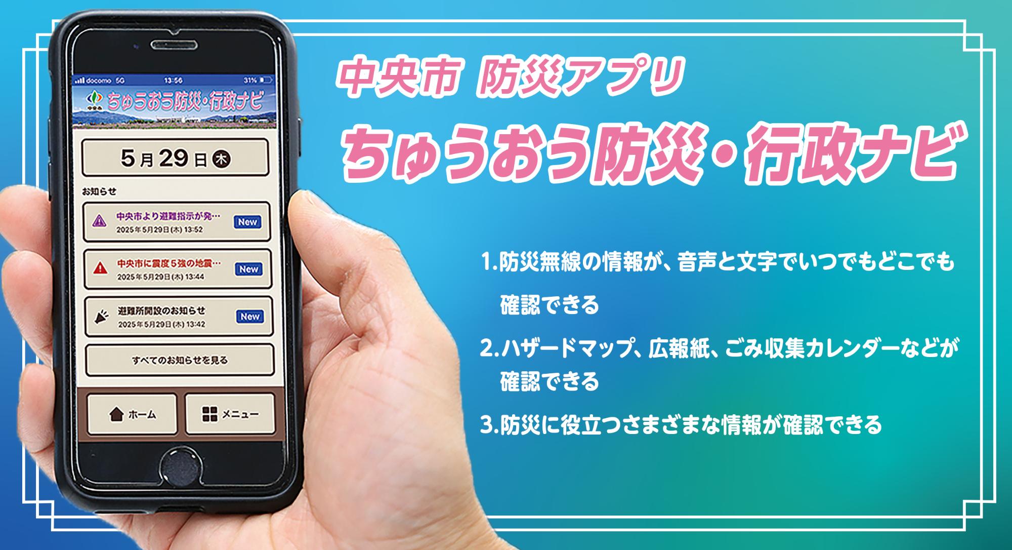 防災アプリ「ちゅうおう防災・行政ナビ」