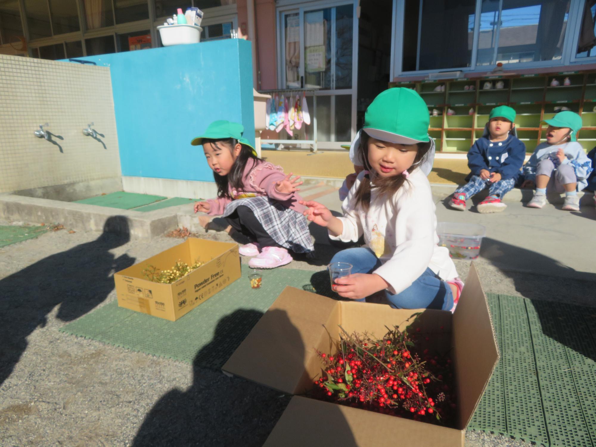 一人ひとり、カップに好きな木のみと水を入れて、凍りそうなところにカップを置きました。