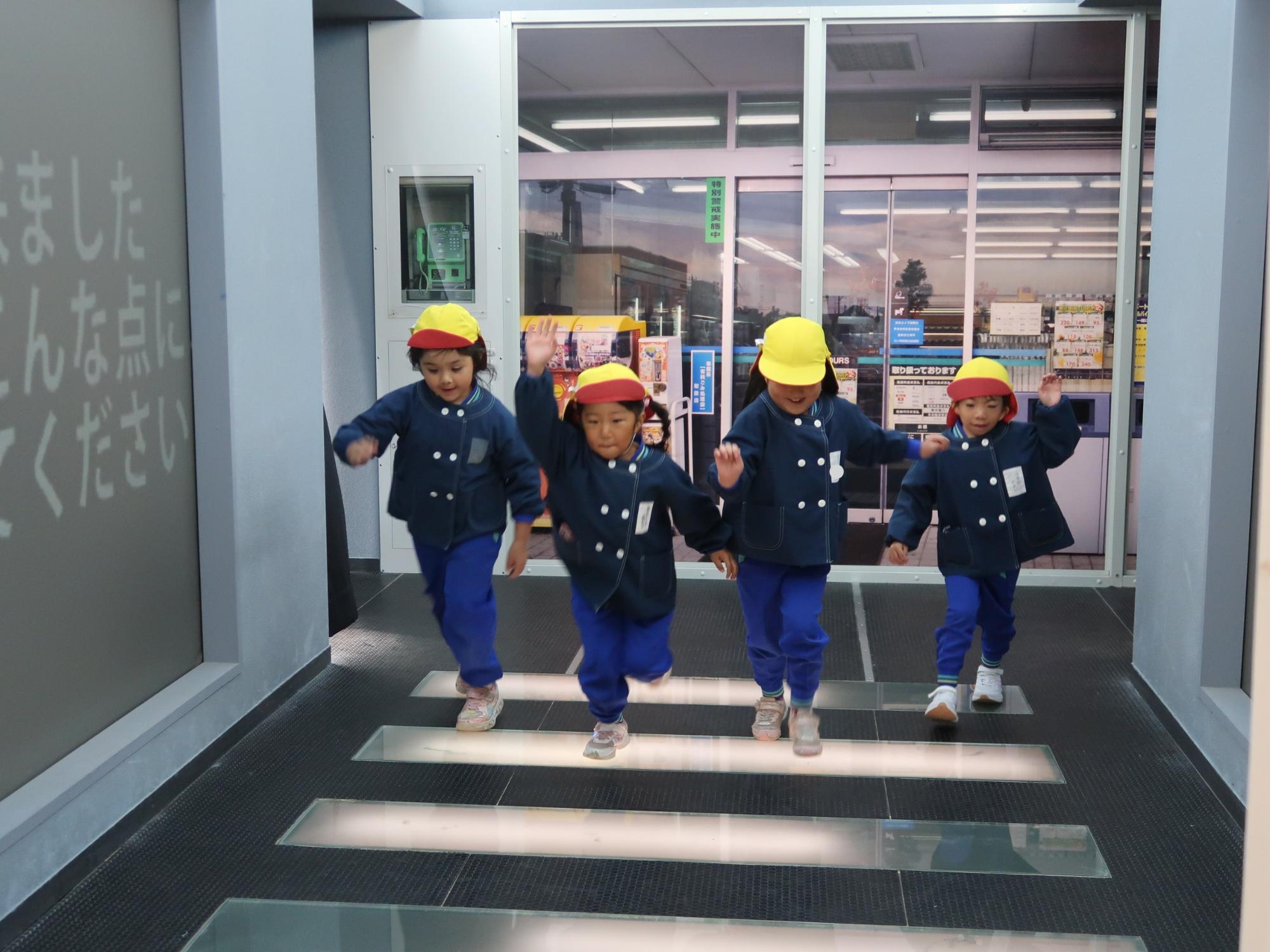 年長さんは交通センターに見学に行きました。横断歩道の渡り方を練習したり、白バイに乗る体験をして交通ルールを学びました。