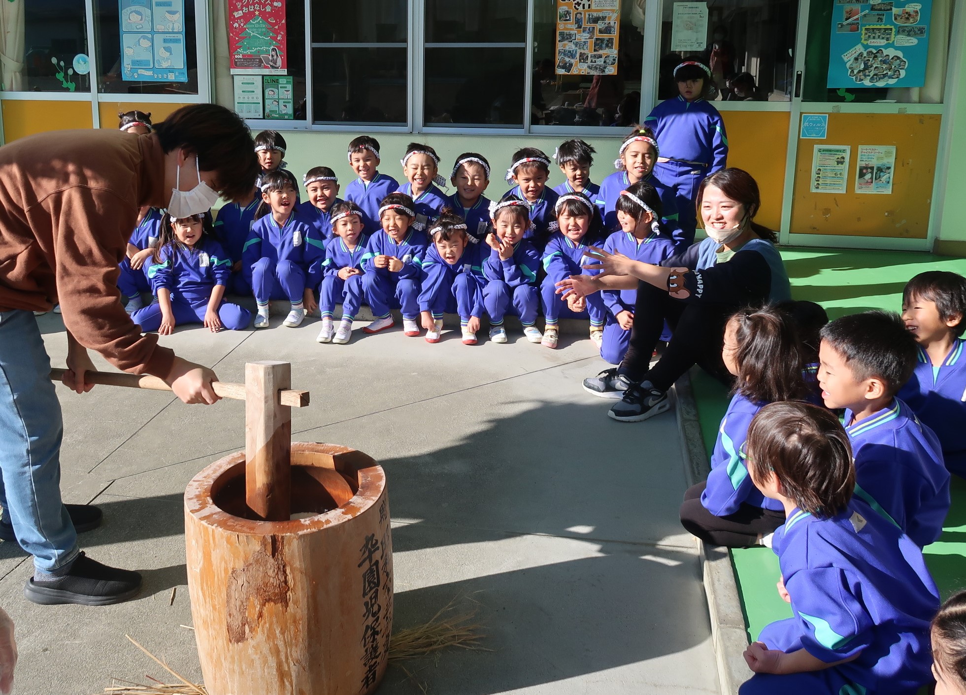 12月 Post ツリーの飾り付け・運動遊び・餅つき クリスマスまでもう少し。ワクワクしながらみんなで飾り付けを楽しみました。 運動遊びではトランポリンに大喜び。バランスのとり方を体で覚えました。 「よいしょー!」と大盛り上がりの餅つき会。餅米がお餅になるまでを見て「お餅になった!すごい!」と感動していました。