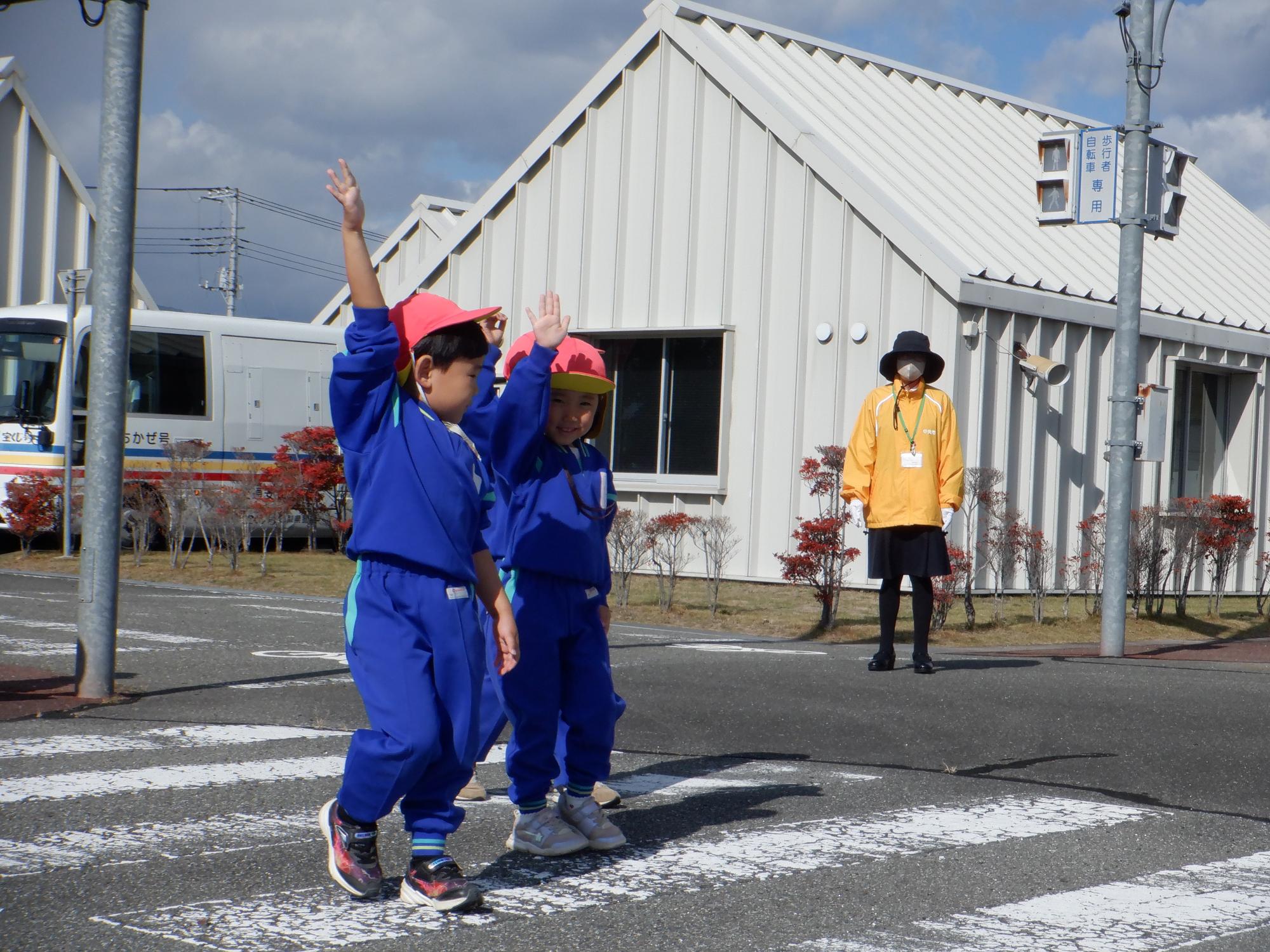 年長児がバスに乗って交通センターに行ってきました。模擬信号を使って横断歩道の渡り方を丁寧に教えてもらいました。