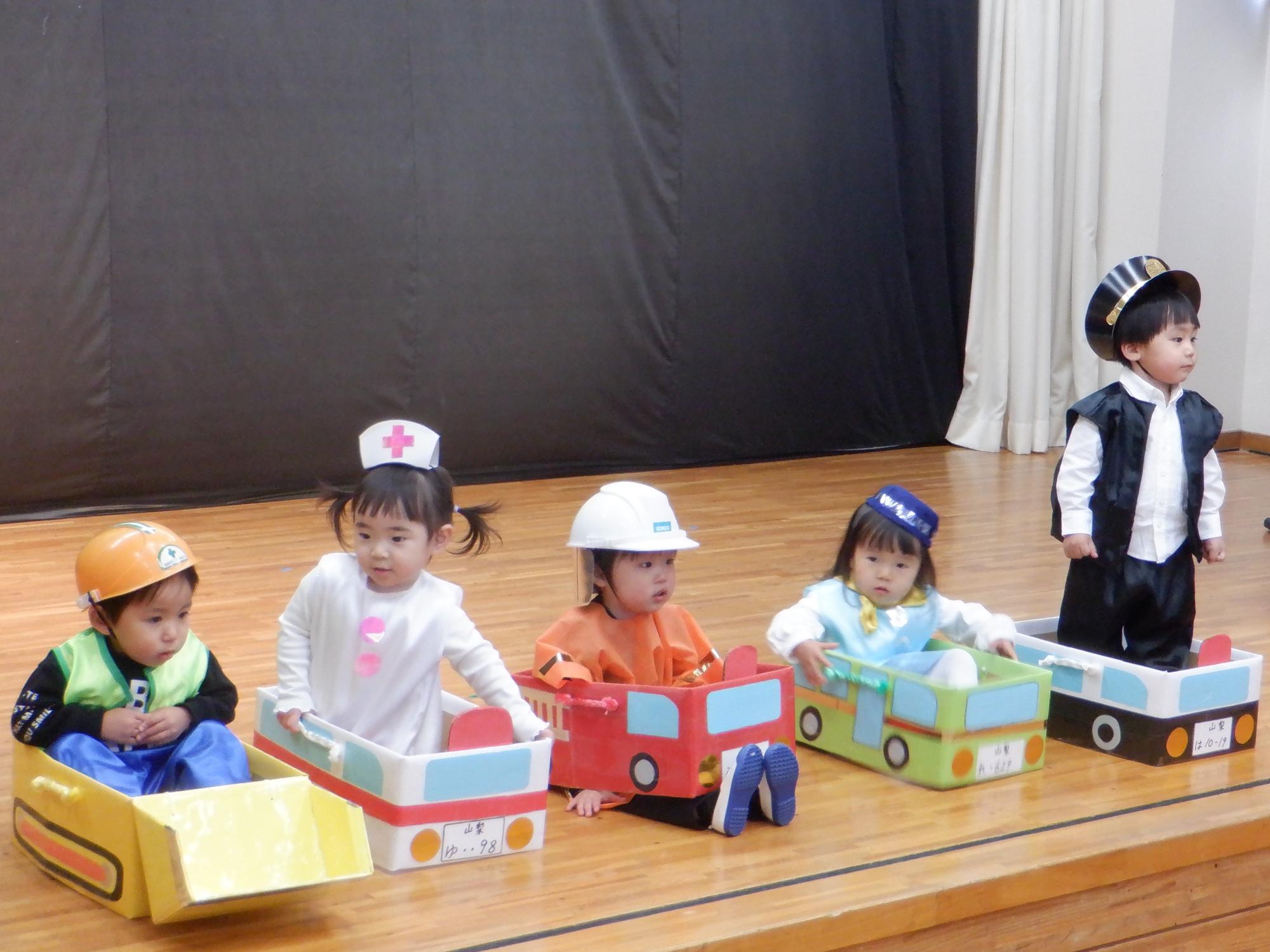 今年も2部に分かれて生活発表会を行いました。1才児の「はたらくくるま」はみんな元気いっぱい走り回ってとっても可愛かったです。
