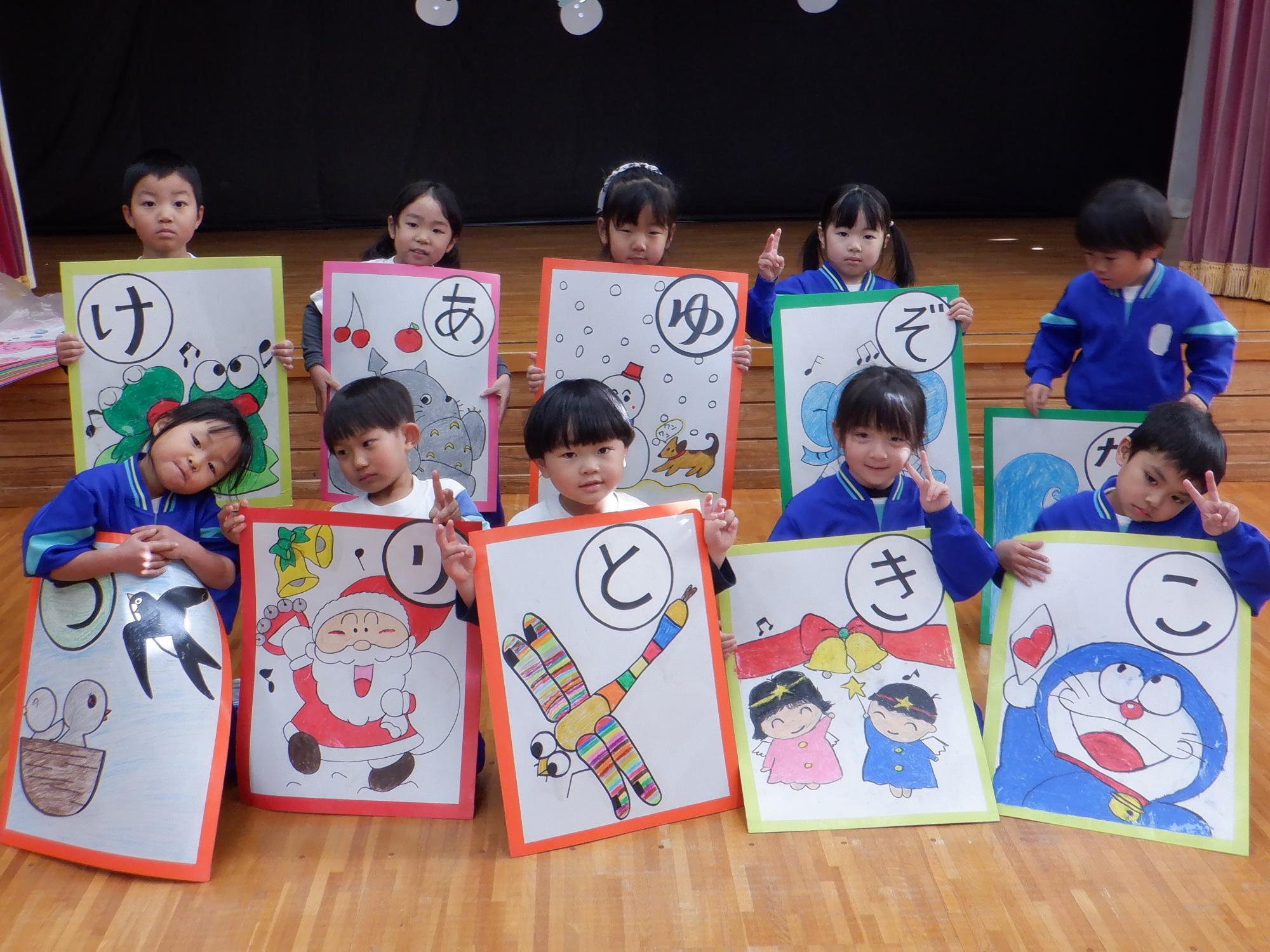 いつもとは違った大きな大きなカルタを使ってカルタ取り。遊戯室いっぱいに広がって遊びました。