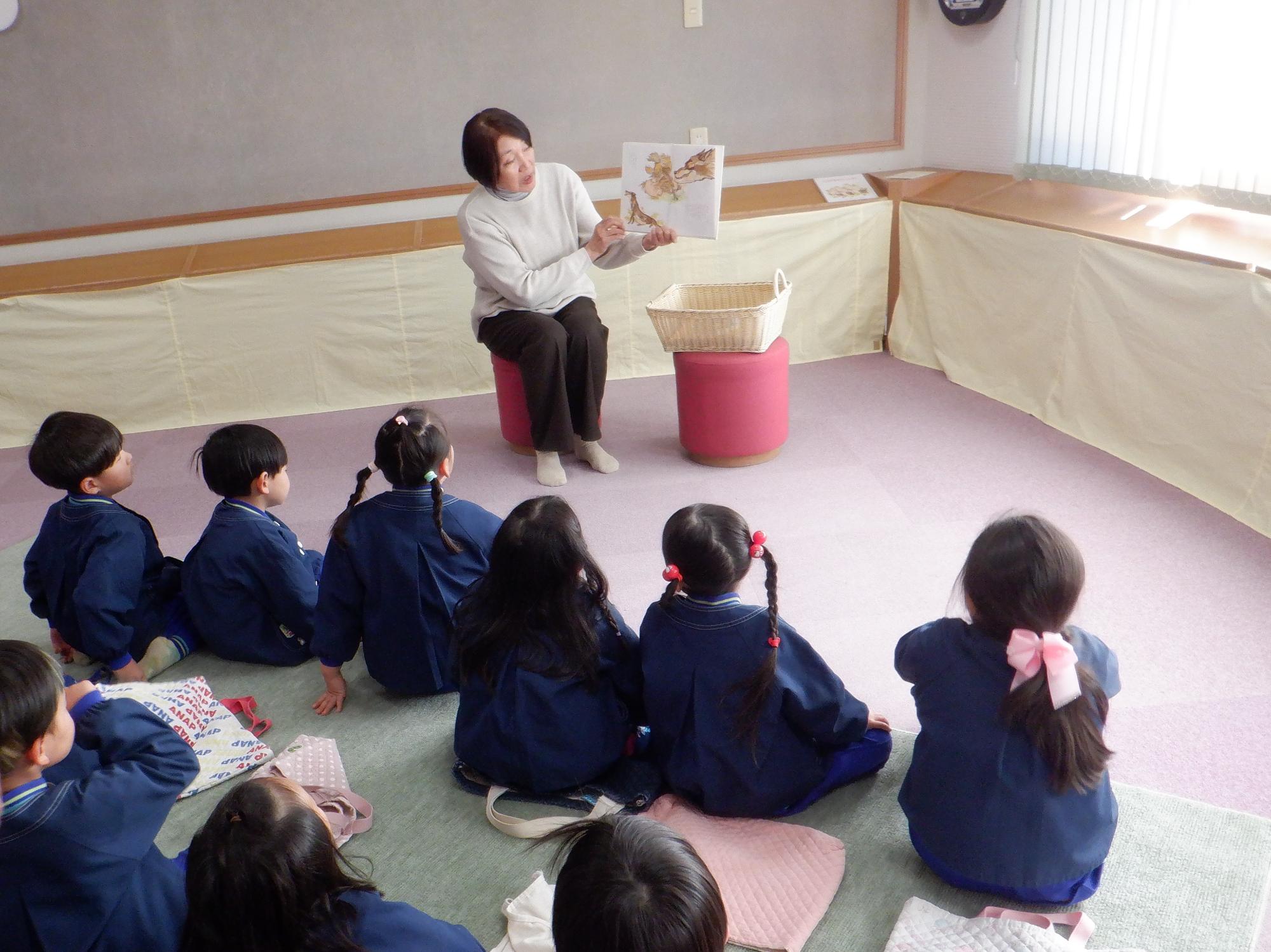 バスに乗って田富図書館に行きました。おはなし会のあとは自分の好きな本を選んで借りて帰りました。
