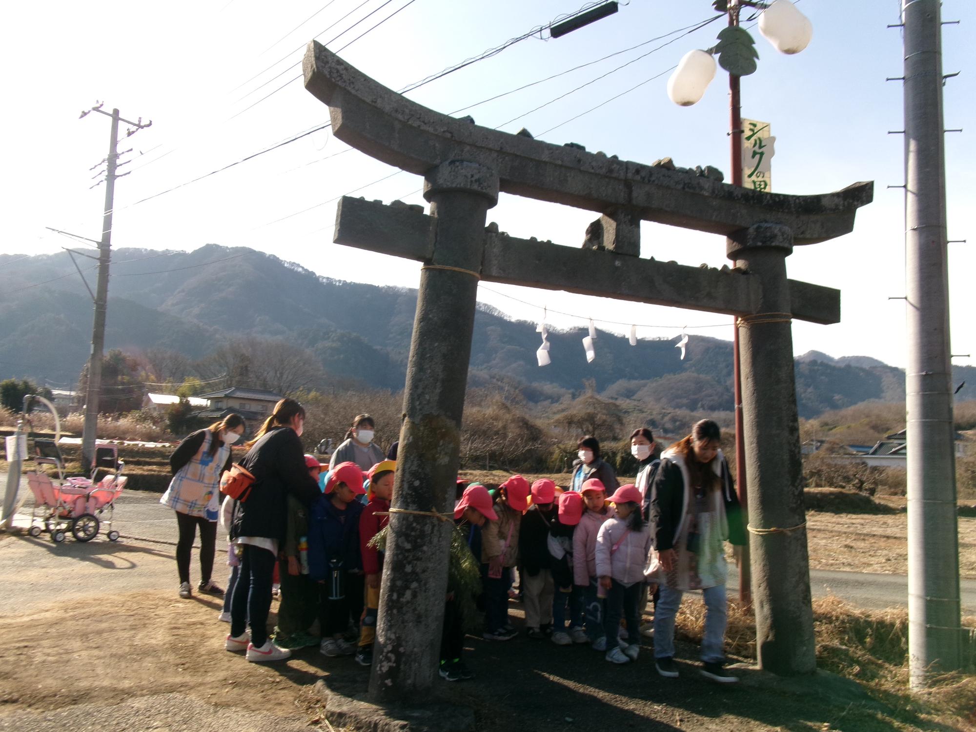 近くの諏訪神社へ歩いて初詣に行きました。参拝の作法を学び、神様に挨拶ができました。