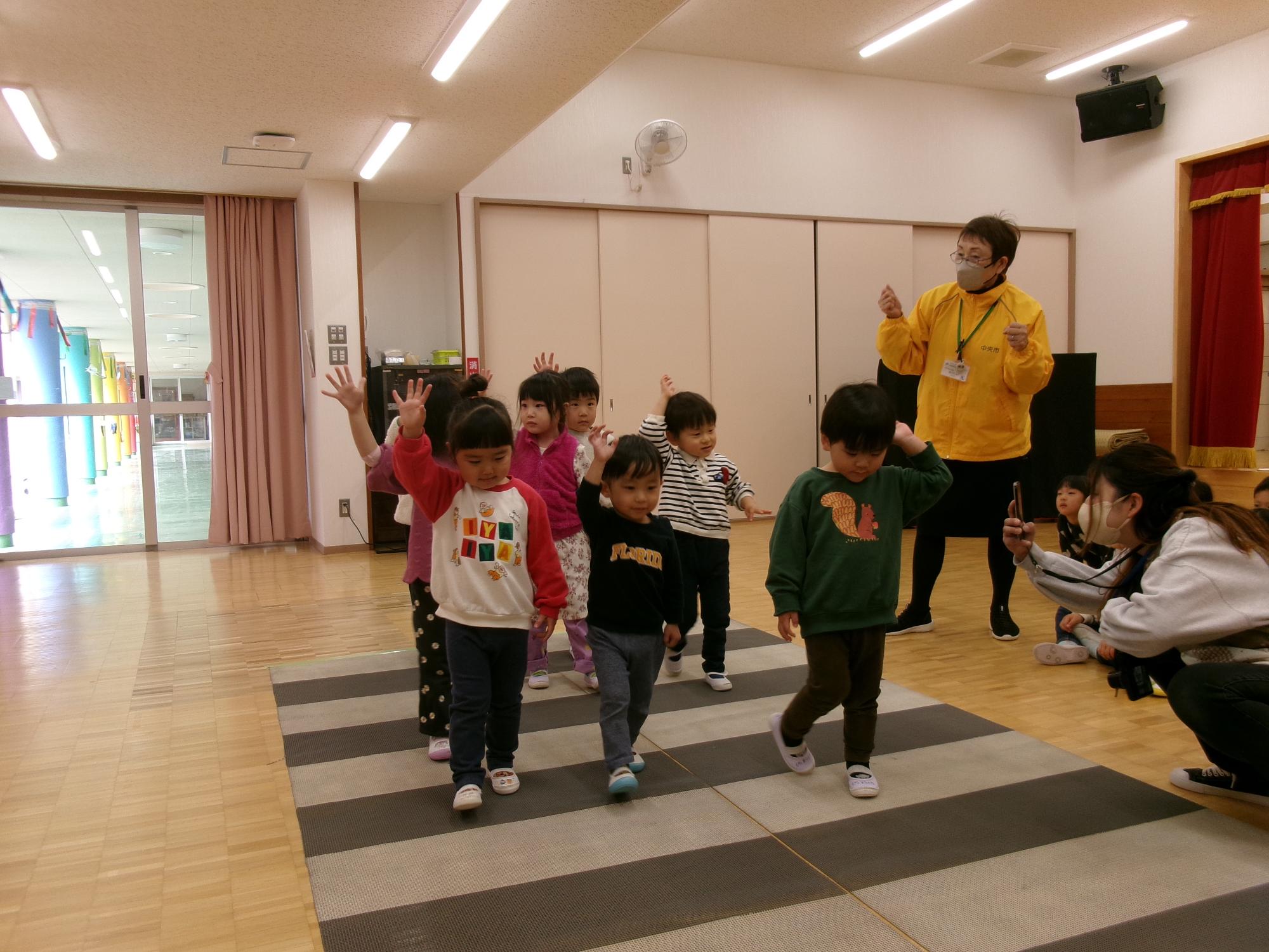 りす2組さんも、かっこよく手をあげて横断歩道を渡る練習が出来ました。