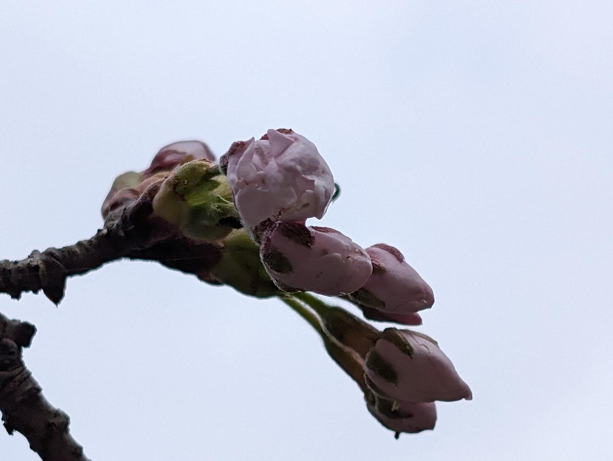 今日は朝から天気がぐずついていて、サクラの開花は進んでいません。