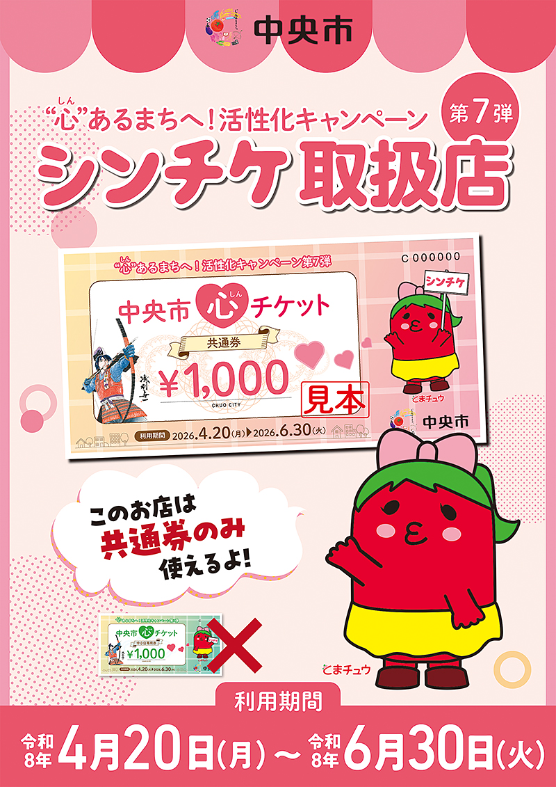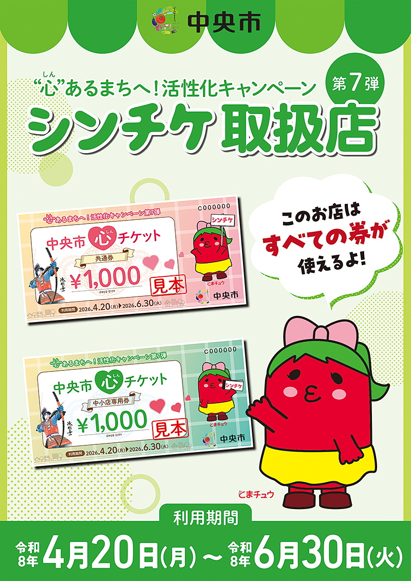 ・取扱店舗の一覧については、広報ちゅうおう4月号と一緒に全戸配付します。